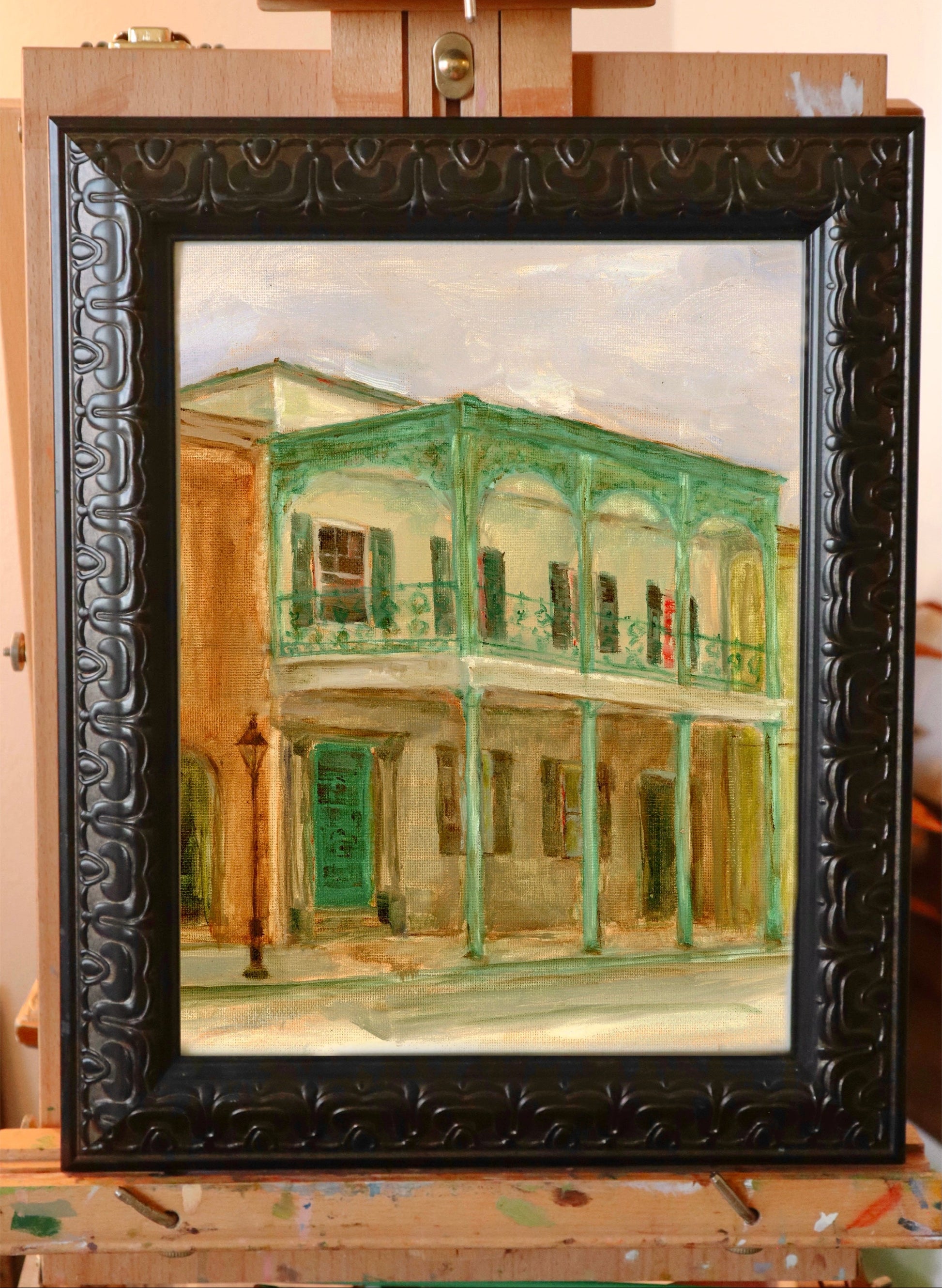 "Drunken French Quarter" captures the vibrant, chaotic essence of New Orleans with its wildly skewed perspective, evoking the delightful disorientation of a day spent wandering its historic, lively streets. The exaggerated angles and whimsical distortions lend a playful, surreal quality, celebrating the city's spirited and carefree atmosphere.