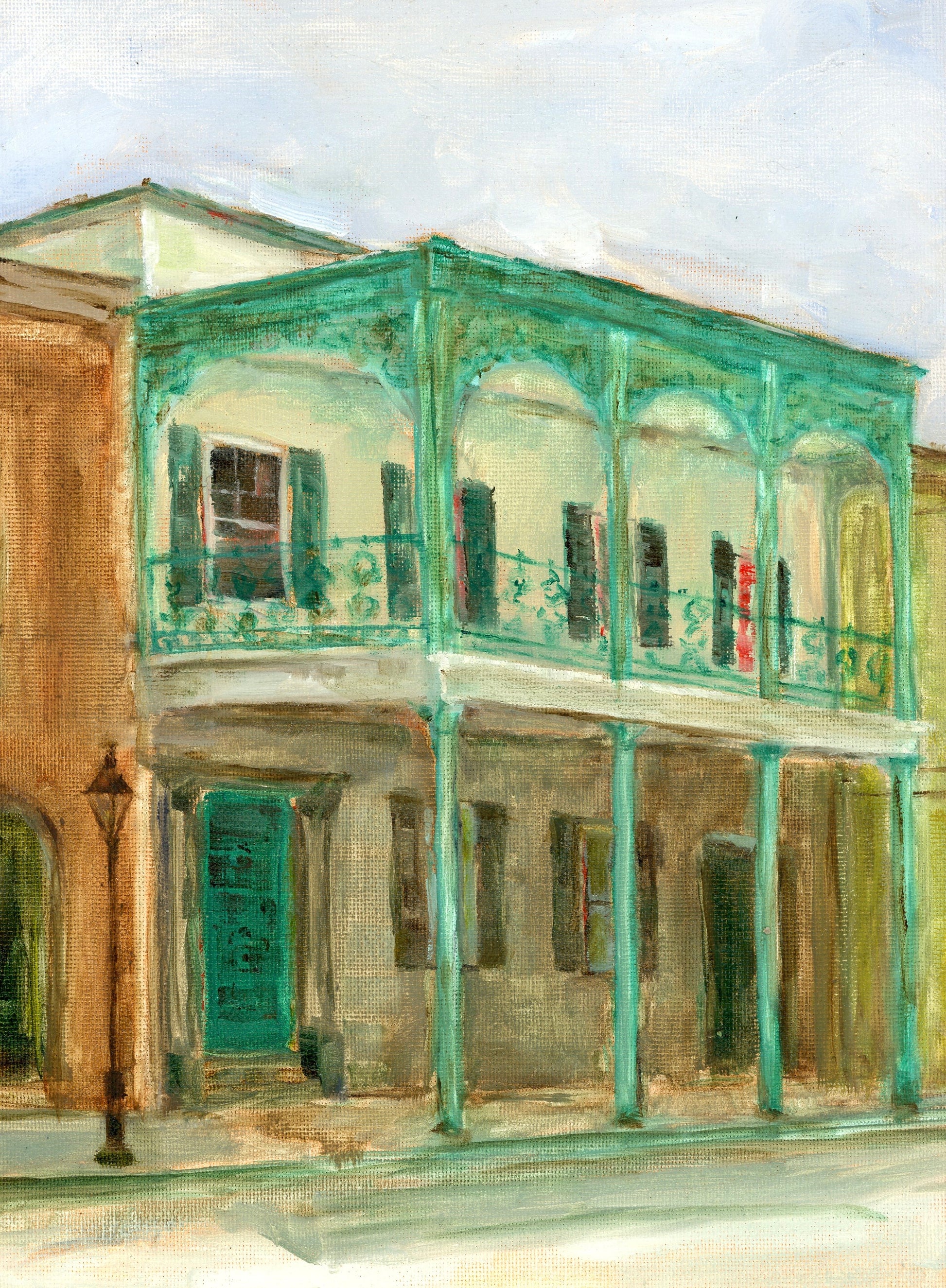 "Drunken French Quarter" captures the vibrant, chaotic essence of New Orleans with its wildly skewed perspective, evoking the delightful disorientation of a day spent wandering its historic, lively streets. The exaggerated angles and whimsical distortions lend a playful, surreal quality, celebrating the city's spirited and carefree atmosphere.